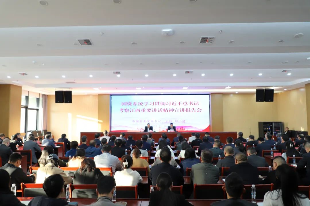 11月16日,學習貫徹習近平總書記考察江西重要講話精神市委宣講團報告會走進市國資系統(tǒng)。市委宣講團成員,市國資委黨委書記、主任鄒小清作宣講報告。市國資委黨委委員、副主任彭紹平主持報告會。市國資委領導班子成員,市發(fā)投集團、城投公司、國投集團、旅游集團等13家市屬國有企業(yè)班子成員,基層黨支部書記,黨員群眾代表及市國資委機關干部,共計 150余人參加。