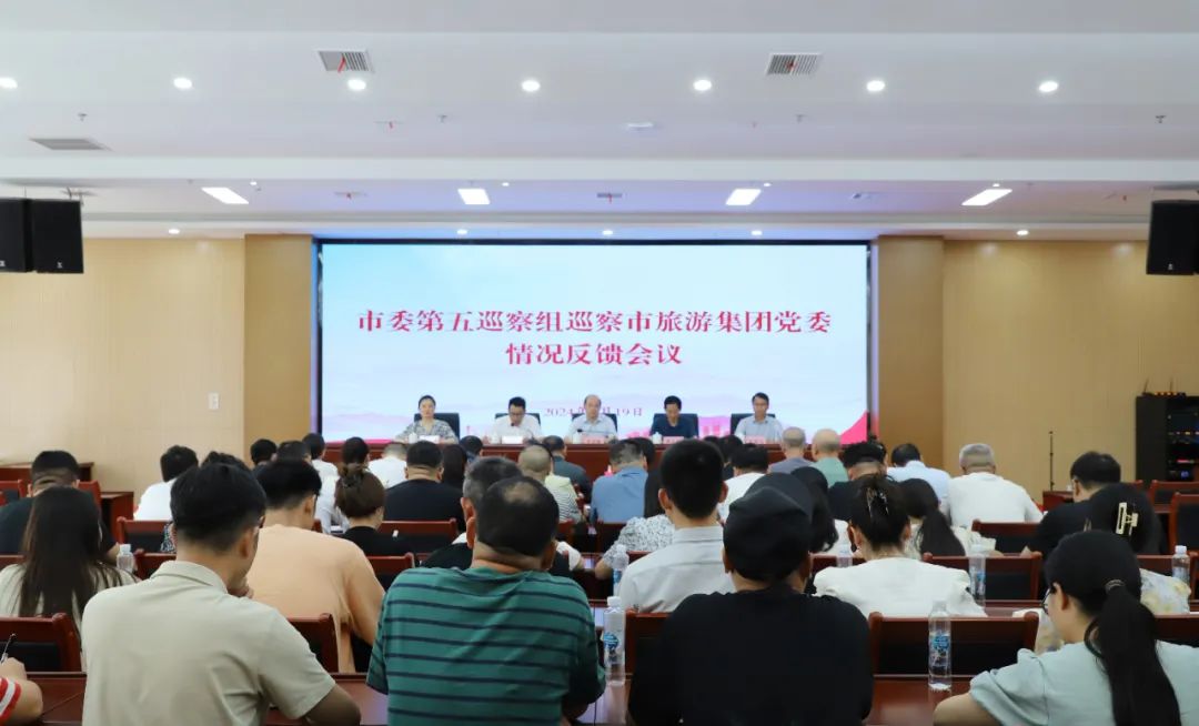 市委第五巡察組副組長毛系元、易志娜,市紀(jì)委市監(jiān)委第六監(jiān)督檢查室、市委組織部干部監(jiān)督科有關(guān)同志及市旅游集團(tuán)黨委班子成員、集團(tuán)本部全體員工和各子公司負(fù)責(zé)人近60余人參加會(huì)議。
