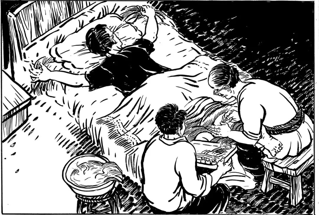 這天,謝團(tuán)長見老中醫(yī)這段時(shí)間總是看見自己的傷口就心事重重的樣子,心里也明白了八九分,便問道:“大叔,是不是我腿中還有彈片?”老中醫(yī)點(diǎn)點(diǎn)頭。謝團(tuán)長又問:“是不是取不出來?”老中醫(yī)說:“取得出來,取得出來?!敝x團(tuán)長笑了笑:“那你現(xiàn)在就給我取吧?!崩现嗅t(yī)猶豫了好一陣子,搖著頭說:“你現(xiàn)在身子還虛,動(dòng)手術(shù)怕有意外,另外……”謝團(tuán)長說:“大叔,如果你沒有什么難處,只管動(dòng)手術(shù)吧,我聽你的。”老中醫(yī)嘆了口氣:“謝團(tuán)長,實(shí)話對(duì)你說,這手術(shù)本來早就該動(dòng),但沒有麻藥怕你吃不消,我和生保想了很多辦法,都沒有把麻藥弄到……”謝團(tuán)長一聽,才知道老中醫(yī)近來心神不寧,四處奔忙,原來是為了找麻藥,想減輕他在手術(shù)時(shí)的痛苦,不禁感動(dòng)得熱淚盈眶。他緊緊攥住老中醫(yī)的手說:“大叔,你們這樣對(duì)待我,我是終身難忘呀!沒有麻藥不要緊,古人尚能刮骨療毒,何況我還是一個(gè)紅軍戰(zhàn)士、共產(chǎn)黨員呢!大叔,你現(xiàn)在就開始動(dòng)手術(shù)吧!”老中醫(yī)望著謝團(tuán)長剛毅的面容,也激動(dòng)得流出了淚水。