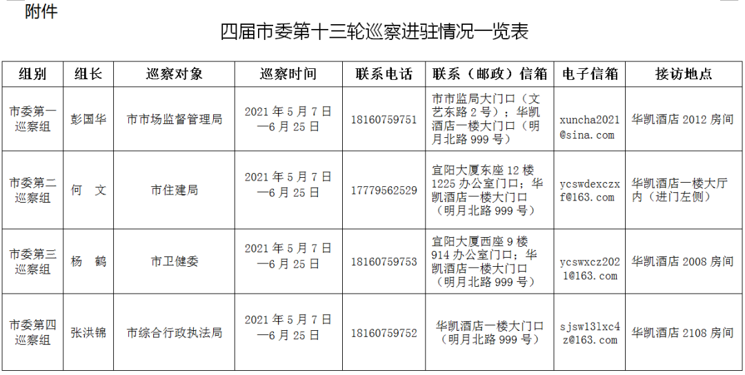附件:四屆市委第十三輪巡察進駐情況一覽表
