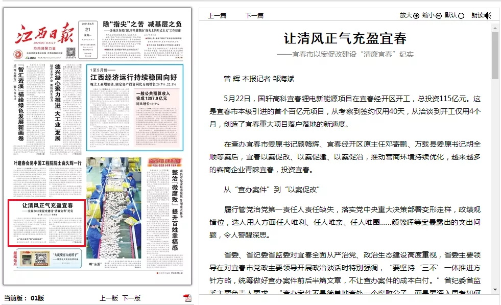 營商環(huán)境的不斷優(yōu)化,穩(wěn)住了經(jīng)濟(jì)基本盤。在涉顏贛輝案的重災(zāi)區(qū)宜春經(jīng)開區(qū),無一家企業(yè)因查辦案件影響而外遷,多家企業(yè)在這里擴(kuò)大投資,還吸引了首個(gè)百億元級的國軒高科項(xiàng)目落戶。