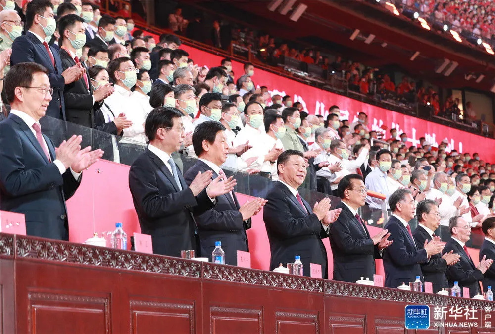 6月28日晚,慶祝中國共產(chǎn)黨成立100周年文藝演出《偉大征程》在國家體育場盛大舉行。習(xí)近平、李克強、栗戰(zhàn)書、汪洋、王滬寧、趙樂際、韓正、王岐山等黨和國家領(lǐng)導(dǎo)人,同約2萬名觀眾一起觀看演出。新華社記者 鞠鵬 攝