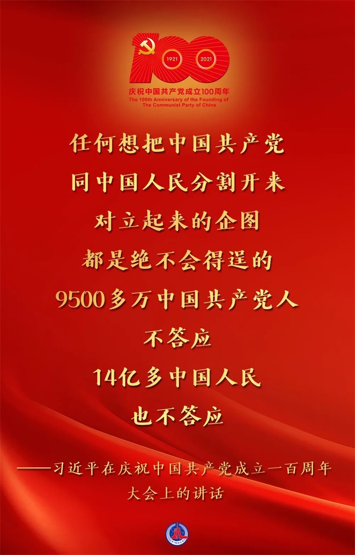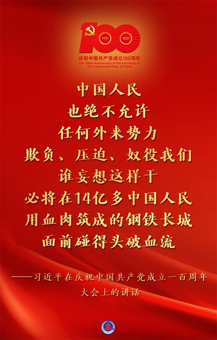 7月1日,慶祝中國共產(chǎn)黨成立一百周年大會在北京隆重舉行,習(xí)近平總書記出席并發(fā)表重要講話。一起讀金句↓