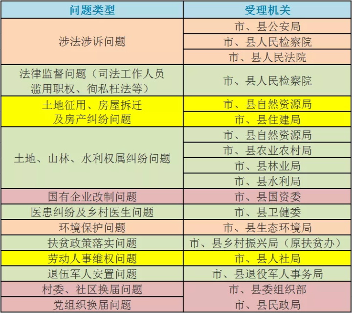 備注:以上各條未列入的問題,均按來信來訪人員反映問題的性質(zhì)和所屬系統(tǒng)分別由有關(guān)主管部門歸口處理。
