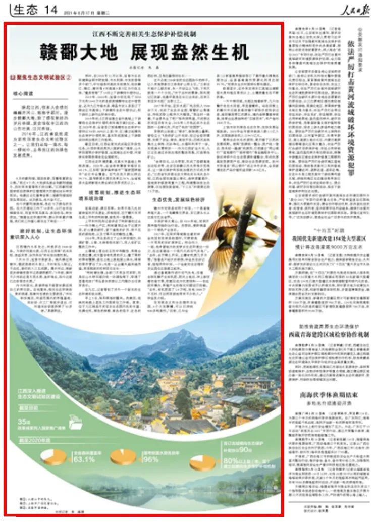 截至目前,江西全面完成試驗(yàn)區(qū)階段性任務(wù),35項(xiàng)改革成果列入國家推廣清單,山水林田湖草沙保護(hù)修復(fù)、全流域生態(tài)補(bǔ)償、河湖林長制等改革走在全國前列。