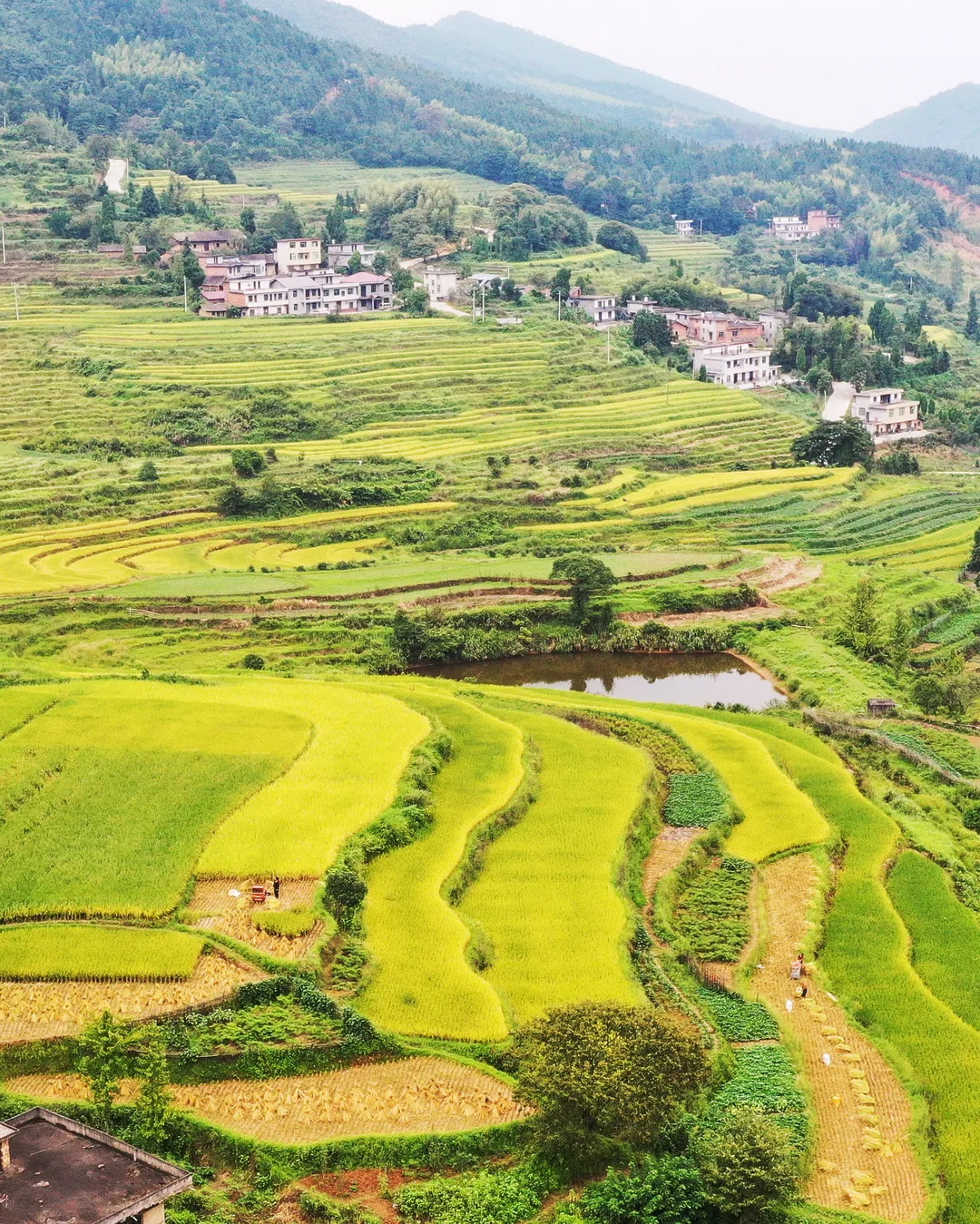 袁州區(qū)洪塘鎮(zhèn)西湖村梯田里的一季稻