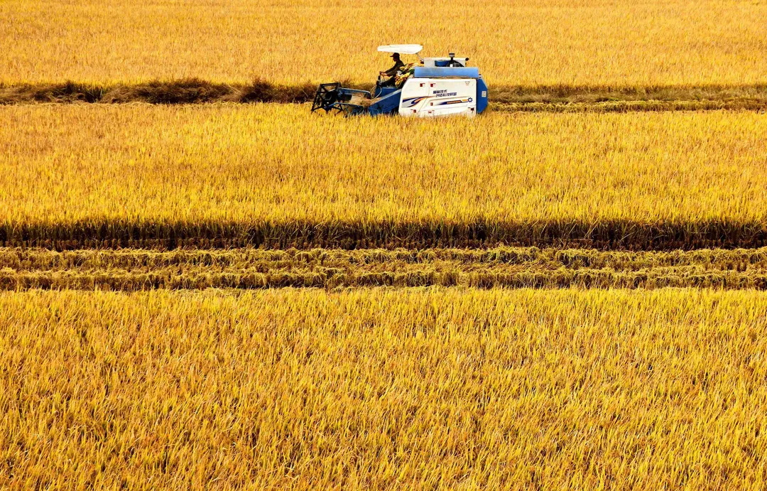 ▲近日,靖安縣仁首鎮(zhèn)石上村村民駕駛農(nóng)機在收割中稻。(徐仲庭 攝)