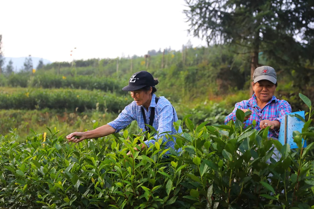 ▲眼下正是秋茶采摘時期,在銅鼓永寧鎮(zhèn)坪田村,村民們正在采摘秋茶。(李秋秋 攝)