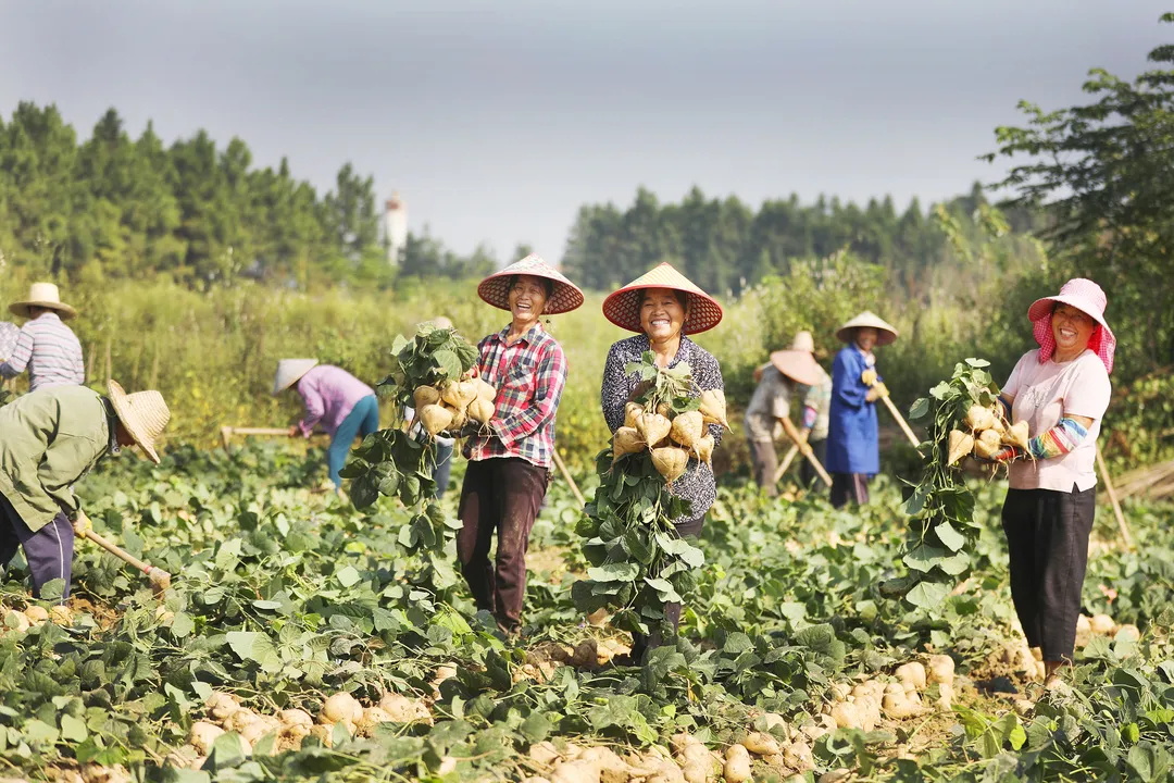 ▲9月16日,上高縣田心鎮(zhèn)田心村村民正在收獲涼薯。(陳旗海 盧星 攝)