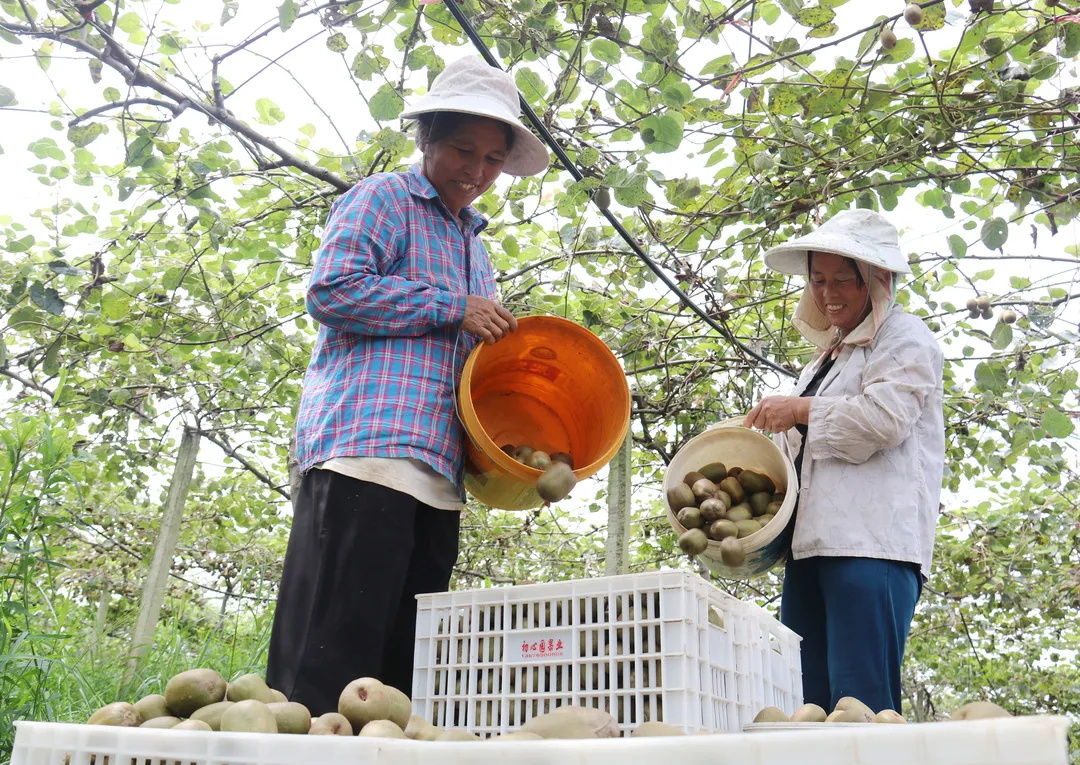 ▲9月10日,奉新縣赤岸鎮(zhèn)丁家村萬畝獼猴桃產(chǎn)業(yè)園,農(nóng)戶在采收獼猴桃。(鄧建剛 攝)