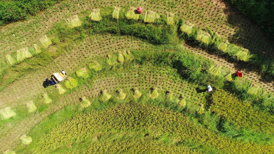 ▲9月15日,萬載縣仙源鄉(xiāng)橫嶺村村民在海拔500米以上高山梯田收獲成熟的水稻。(鄧龍華 攝)