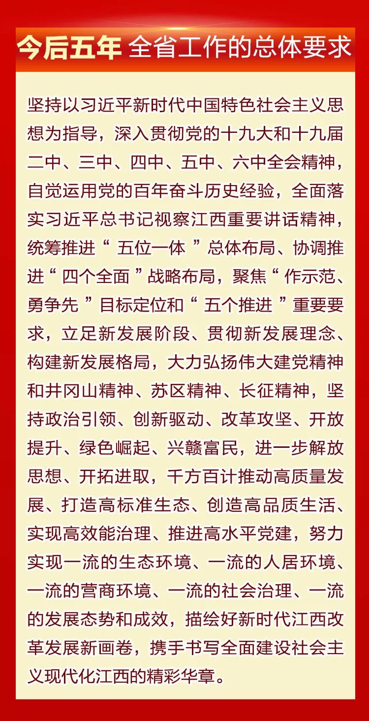 大會主題是:高舉習近平新時代中國特色社會主義思想偉大旗幟,深入貫徹落實習近平總書記視察江西重要講話精神,動員全省廣大黨員和干部群眾,從黨的百年奮斗重大成就和歷史經(jīng)驗中汲取智慧和力量,大力弘揚偉大建黨精神和井岡山精神、蘇區(qū)精神、長征精神,咬定“作示范、勇爭先”的目標要求,進一步解放思想、開拓進取,攜手書寫全面建設社會主義現(xiàn)代化江西的精彩華章。