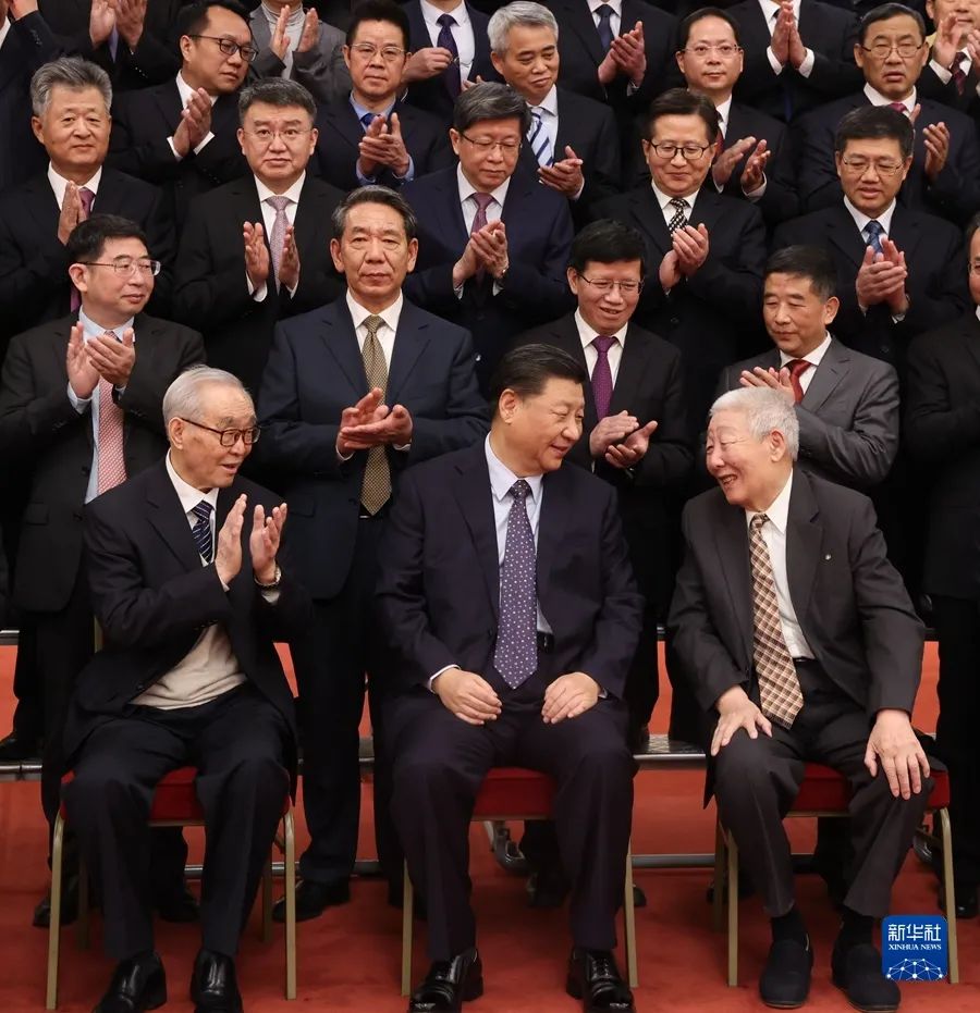 2021年2月22日,黨和國家領(lǐng)導(dǎo)人習(xí)近平、李克強(qiáng)、栗戰(zhàn)書、汪洋、王滬寧、趙樂際、韓正等在北京人民大會堂會見探月工程嫦娥五號任務(wù)參研參試人員代表并參觀月球樣品和探月工程成果展覽。這是習(xí)近平會見探月工程嫦娥五號任務(wù)參研參試人員代表時,同孫家棟、欒恩杰等親切交流。