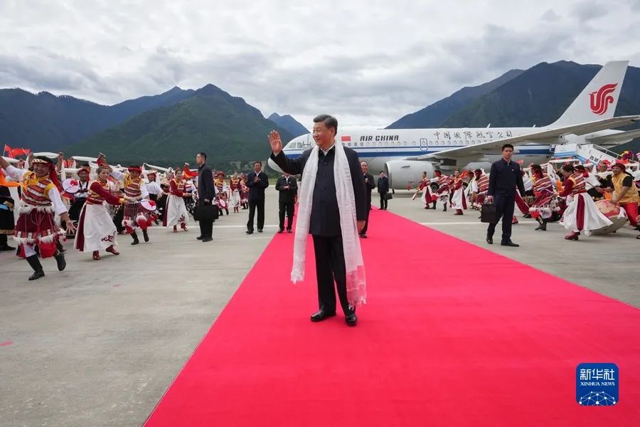 2021年7月21日至23日,中共中央總書記、國家主席、中央軍委主席習(xí)近平來到西藏,祝賀西藏和平解放70周年,看望慰問西藏各族干部群眾。這是21日上午,習(xí)近平乘坐飛機(jī)抵達(dá)林芝米林機(jī)場,西藏各族干部群眾載歌載舞,熱烈歡迎習(xí)近平總書記的到來。