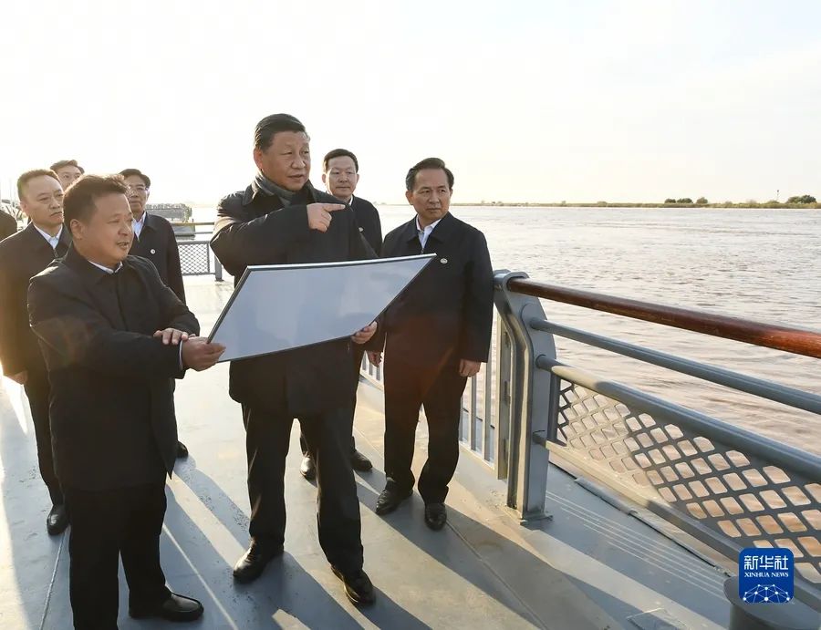 2021年10月22日下午,中共中央總書記、國家主席、中央軍委主席習(xí)近平在山東省濟(jì)南市主持召開深入推動黃河流域生態(tài)保護(hù)和高質(zhì)量發(fā)展座談會并發(fā)表重要講話。這是座談會前,習(xí)近平20日下午在東營市黃河入??诳疾?。