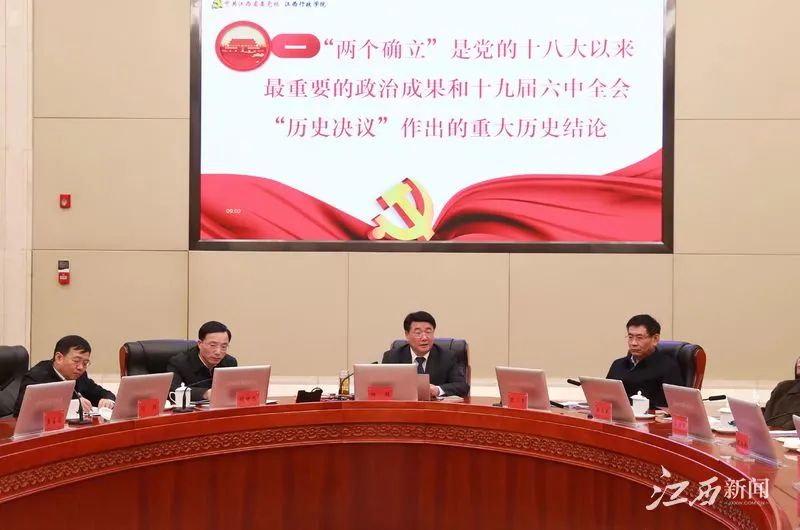 易煉紅就深入學習貫徹黨的十九屆六中全會精神,更加堅定自覺地捍衛(wèi)“兩個確立”、做到“兩個維護”提出要求。他強調,