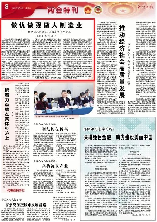 “要加快制造業(yè)向高端化、智能化、綠色化、融合化、服務(wù)化轉(zhuǎn)型?!比~建春代表說,聚焦打造中部地區(qū)制造業(yè)高質(zhì)量發(fā)展示范區(qū)和全國傳統(tǒng)產(chǎn)業(yè)轉(zhuǎn)型升級(jí)高地、新興產(chǎn)業(yè)培育發(fā)展高地,江西將深入實(shí)施新興產(chǎn)業(yè)倍增、傳統(tǒng)產(chǎn)業(yè)優(yōu)化升級(jí)、新經(jīng)濟(jì)新動(dòng)能培育“三大工程”。一是增強(qiáng)創(chuàng)新動(dòng)能。實(shí)施推進(jìn)創(chuàng)新型省份高質(zhì)量發(fā)展三年行動(dòng)計(jì)劃,加快鄱陽湖國家自主創(chuàng)新示范區(qū)、中科院贛江創(chuàng)新研究院等建設(shè);深入開展國家級(jí)創(chuàng)新平臺(tái)攻堅(jiān)行動(dòng)和高端研發(fā)機(jī)構(gòu)共建行動(dòng),力爭全年引進(jìn)共建高端研發(fā)機(jī)構(gòu)30家;開展企業(yè)技術(shù)創(chuàng)新能力提升行動(dòng),推動(dòng)骨干企業(yè)研發(fā)機(jī)構(gòu)全覆蓋。二是強(qiáng)化數(shù)字賦能。大力實(shí)施數(shù)字經(jīng)濟(jì)做優(yōu)做強(qiáng)“一號(hào)發(fā)展工程”,推進(jìn)5G、工業(yè)互聯(lián)網(wǎng)、大數(shù)據(jù)等新型基礎(chǔ)設(shè)施建設(shè);推動(dòng)企業(yè)“上云用數(shù)賦智”,拓展制造業(yè)與互聯(lián)網(wǎng)融合試點(diǎn)示范,推進(jìn)全產(chǎn)業(yè)鏈數(shù)字化改造。三是激發(fā)綠色潛能。推動(dòng)傳統(tǒng)產(chǎn)業(yè)綠色化改造,加快構(gòu)建循環(huán)型產(chǎn)業(yè)鏈和循環(huán)經(jīng)濟(jì)體系;推進(jìn)國家資源綜合利用基地建設(shè),實(shí)施綠色低碳示范工程。