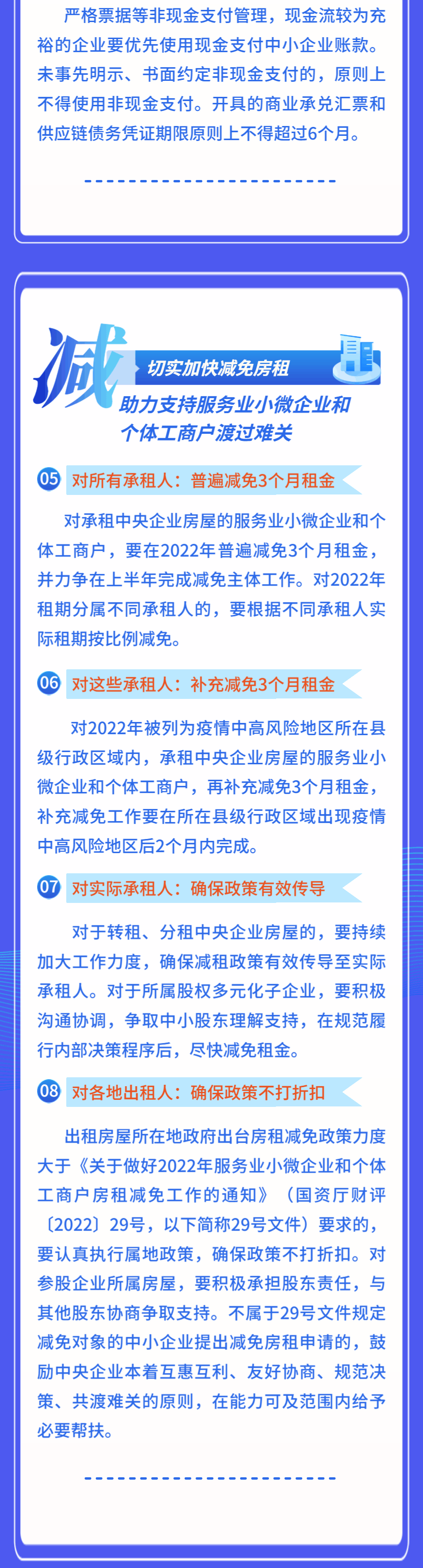 《通知》主要圍繞支付賬款、減免房租、降低成本、優(yōu)化供給、融通資金、融通創(chuàng)新、協(xié)同發(fā)展等7方面提出27條舉措,解中小企業(yè)“燃眉之急”,推動央企與中小企業(yè)共同“做大蛋糕”。