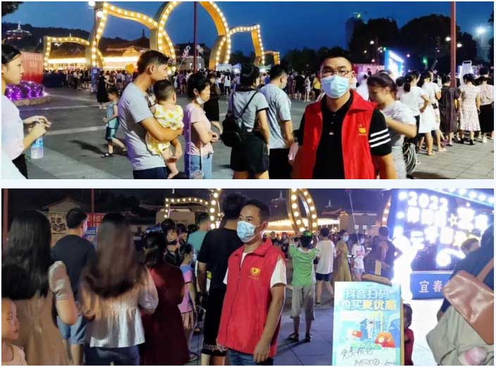 由于夜間服務(wù)的供需加速,禪博園景區(qū)一線對客服務(wù)工作量不斷增大,出現(xiàn)人員臨時短缺情況。為了給游客提供更優(yōu)質(zhì)的服務(wù),宜春旅游集團黨委因勢利導(dǎo),積極開展“夏夜追光,黨徽閃耀禪博園”主題黨日活動,全體黨員、入黨積極分子積極響應(yīng)、迅速集結(jié),各司其職,通過文明勸導(dǎo)、秩序維護和環(huán)境清理等活動,宣傳文明旅游,倡導(dǎo)游客文明、健康、綠色出行,讓游客乘興而來,滿意而歸。