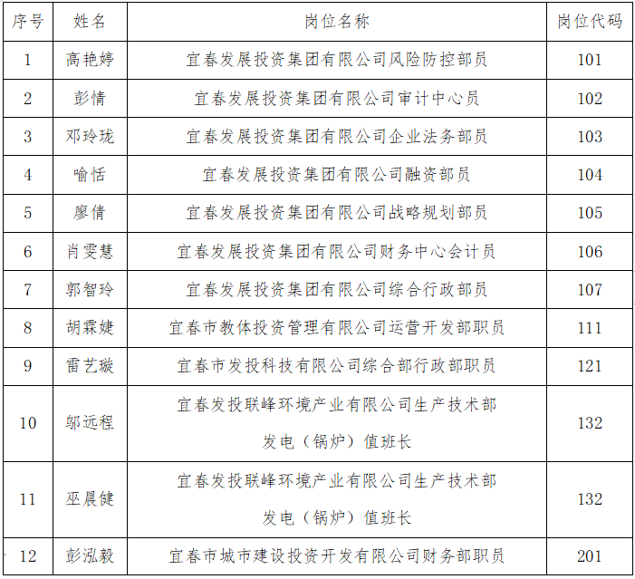 2022年宜春市國(guó)資委市屬國(guó)有企業(yè)招聘高校應(yīng)屆畢業(yè)生擬聘用人員公示