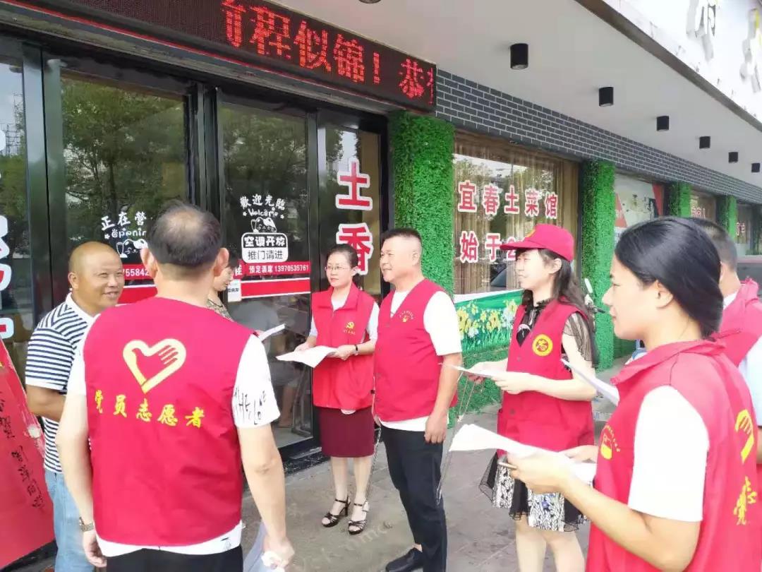 座談結(jié)束后,共建單位的黨員和社區(qū)干部又頂著烈日來到社區(qū)所轄水墨江南社區(qū),現(xiàn)場了解“創(chuàng)文護(hù)衛(wèi)”宣傳造勢工作情況和居民小區(qū)垃圾分類工作情況,并積極開展志愿活動,向社區(qū)商戶發(fā)放測評調(diào)查問卷、撿拾生活垃圾。